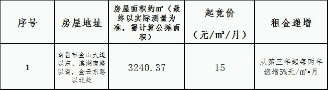 七、报名时间:自2023年7月4日起至2023年7月10日止,发布公告之日起7个工作日为一个竞拍周期,每个竞拍周期满后若收到超过3人报名则组织竞拍,若未收到3人报名则进入下一个竞拍周期,将在南昌金开集团有限公司微信公众号公布租赁商务条款的调整信息。