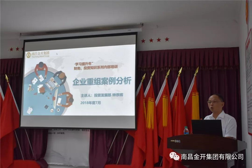 7月29日,金开集团在集团下属工匠集团一楼大会议室组织开展了“学习提升年”财务、投资系列培训——“企业重组案例分析专题培训”,金开集团总经理潘贤林出席,集团投资发展部部长钟序辉担任讲师,集团下属各子、分公司财务、投资口相关人员参加。