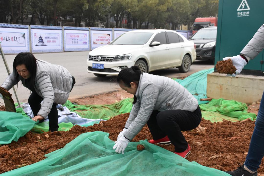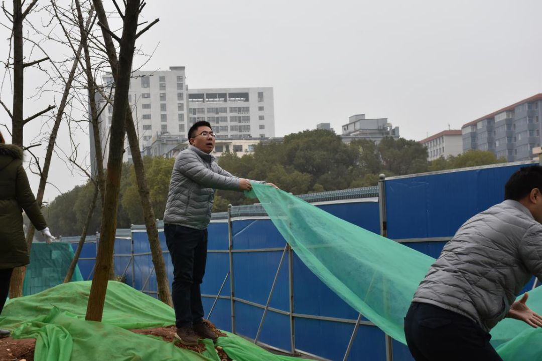1月8日,边文彬带领公司员工前往双港东大街、榴云路、菊圃路路口等在建道路,对裸土进行绿网全覆盖。