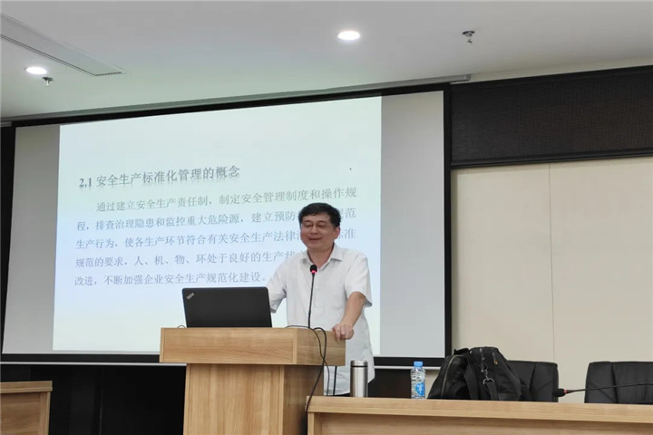 此次培训学习会特邀江西建工集团高级工程师蓝九元担任讲师,会上,蓝九元以安全生产真实案例为切入点,结合自身多年项目安全管理经验,紧密围绕《安全生产标准化基本要求》讲义课程进行了深入解析。