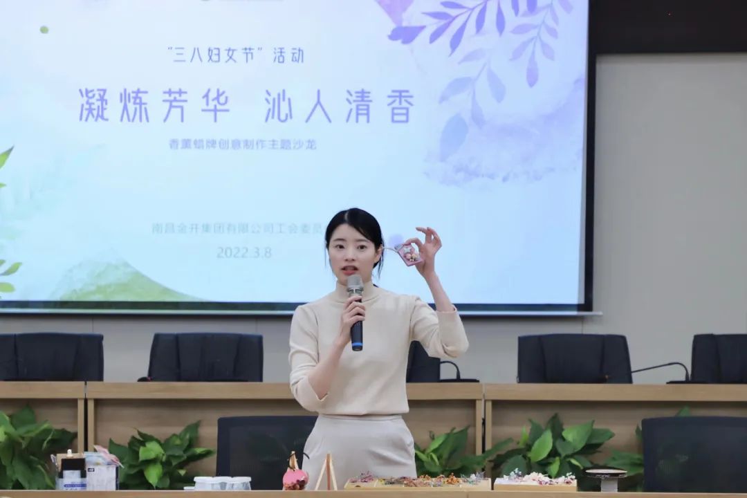 集团党委、集团工会开展了“凝炼芳华 沁人清香”香薰蜡牌创意制作主题沙龙活动,集团党委书记、董事长涂亮,集团党委副书记、工会主席袁扣华出席活动并对女职工们致以节日问候,30余名集团本部女职工参加。