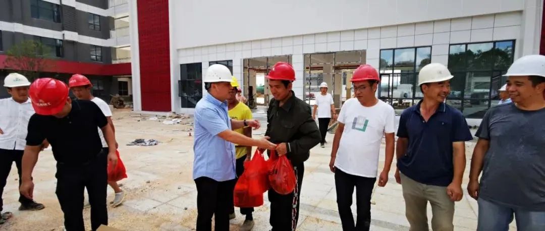 李茶根一行来到南昌二中经开校区项目,现场为农民工朋友们送去了夏日清凉,并详细询问了他们的生产生活情况,嘱咐他们要合理调节工作时间,注意保重身体,时刻注意安全生产。