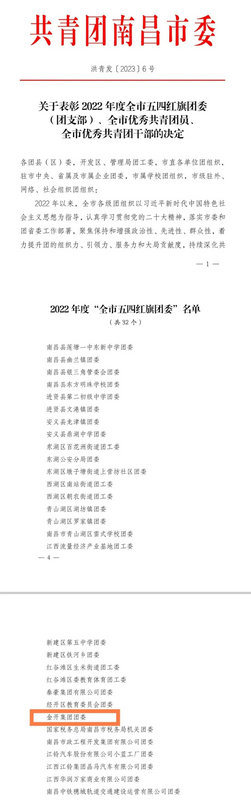 “五四”前夕,共青团南昌市委下发了《关于表彰2022年度全市五四红旗团委(团支部)、全市优秀共青团干部、全市优秀共青团员的决定》。集团团委喜获2022年度“全市五四红旗团委”荣誉称号。