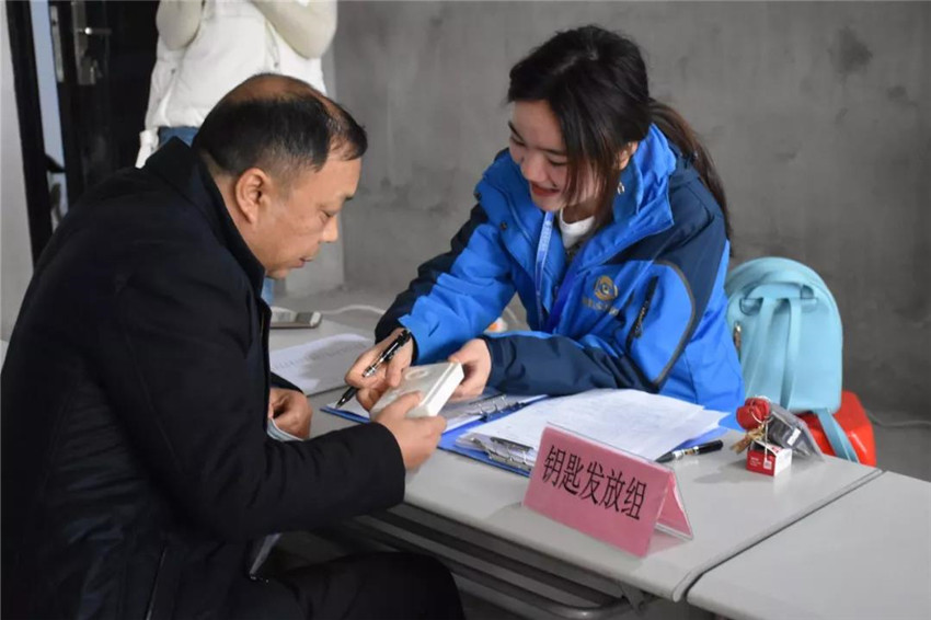 交房当天,居民李先生携带交房所需证件和资料来到金世纪安置小区交房现场缴纳了相关费用,并签订了各项契约,随后顺利领取了钥匙。随即,在验房工作人员的陪同下,他检查了新房的屋面、墙面、门窗、水电等,确认房屋没有问题后,在《业主房屋验收交接表》上郑重地签上了自己的名字。